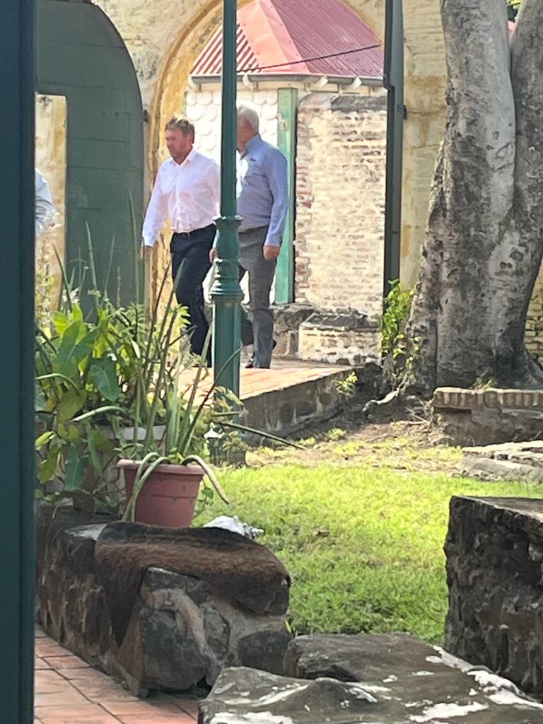 Dat betekende dat ik onze koning, onze koningin, prinses Amalia en staatssecretaris Van Huffelen welkom mocht heten bij de aankomst met de bus. Vervolgens heb ik ze begeleid naar de trap die uitkomt bij de raadzaal. Ik heb de gasten mogen voorstellen aan de raadsleden en vervolgens heb ik ze naar hun zitplaatsen gebracht. Ik nam met Van Huffelen plaats aan de andere zijde van de vergadertafels. Alida mocht als voorzitter van de eilandsraad het gesprek inleiden en ik had aan de voorkant wat onderwerpen aangereikt voor het gesprek en ook een suggestie gedaan voor de eerste spreker. Wat volgde was een goed gesprek over de gezondheid op het eiland, de voedselvoorziening en uiteraard ook nog over het slavernijverleden.