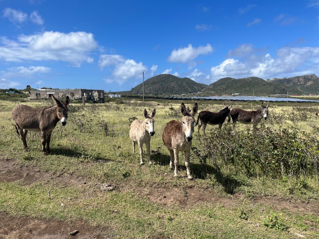 Naast geiten, schapen en koeien zijn er ook loslopende ezels op Statia
