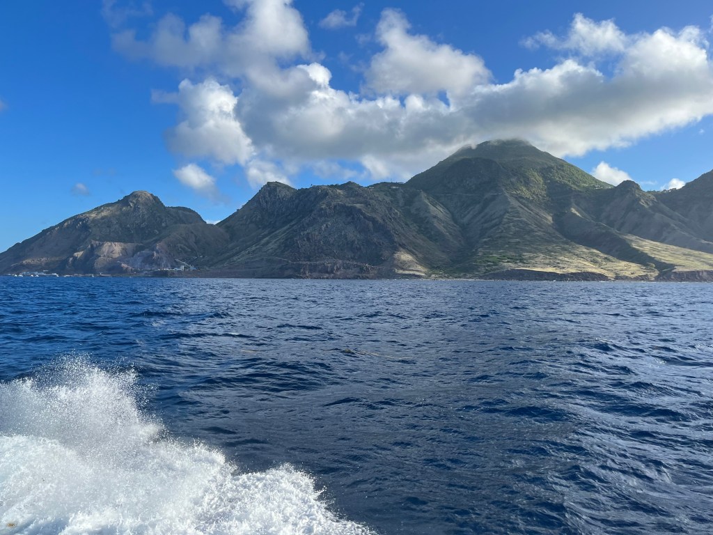 Op Hemelvaartsdag zijn we naar Saba gegaan voor een korte vakantie. Saba is net als Statia een BES-gemeente in de bovenwinden. Het is een eiland met ca 2.000 inwoners en heeft als bijnaam “the Unspoiled Queen”. Statia heeft als bijnaam “the Golden Rock”. Er zijn twee manieren om op Saba te komen: via het water met de ferry van Makana of via de lucht met een vliegtuig van Winair. Door de lucht betekent:  eerst vliegen naar Sint Maarten en dan overstappen naar Saba. Dat kan maar op twee dagen met korte tussenstop op Sint Maarten; de andere dagen betekent het een dag wachten op Sint Maarten. Niet zo aanlokkelijk vooruitzicht. De andere mogelijkheid is via de ferry. Makana onderhoudt de veerdiensten tussen Saba, Statia, Sint Maarten en sinds een aantal maanden ook met St. Kitts. So far, so good. Maar dan komt het. Het traject van Saba naar Statia en dan alleen in deze richting is berucht vanwege de stroming en de golven. De catamaran waarmee wordt gevaren kan harde klappen maken en soms waan je je meer in de Python in de Efteling dan op zee. Mijn gestel is daar  slecht tegen bestand. De hulpmiddelen bij misselijkheid aan boord zijn goed aan mij besteed. Via de ferry kun je vrijwel dagelijks naar Saba en de kosten zijn beduidend minder dan via de lucht. Of de CO2-reductie hetzelfde is, weet ik niet. De boot ruikt wel erg naar stookolie.