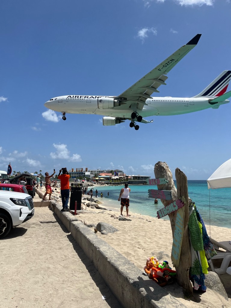 Zondag gaan we met een volle kofferbak rondrijden over het eiland. Immers, aan het einde van dag wacht ons de boot terug en voordien moet de auto worden ingeleverd. Nu gaan we de Nederlandse kant rond het vliegveld bekijken. Hoge hotelflats, mooie stranden, een verlaten golfterrein met nog vlaggetjes op holes en hier en daar nog ruïnes van Irma. Puur toerisme. Uiteraard bezoeken we ook de beroemde spot op het strand, waar de aankomende vliegtuigen haast zijn aan te raken.