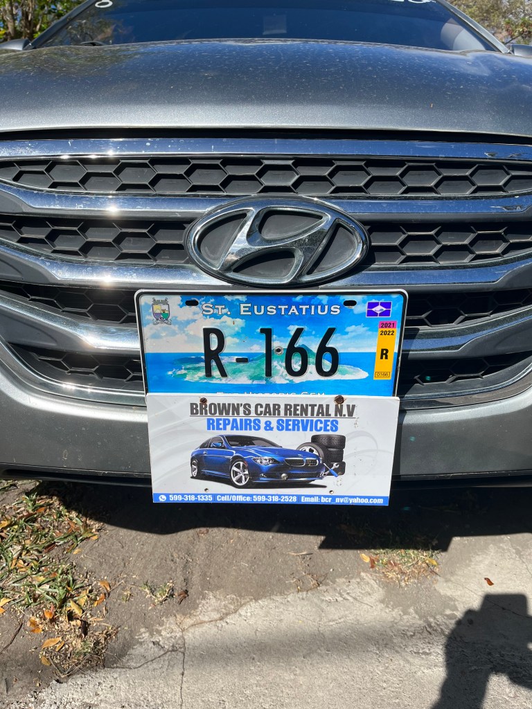 Een soort waddeneiland dus, maar dan iets verder gelegen van het Nederlandse vaste land. Kijk naar de hulpdiensten: De bekende gele kleuren van de ambulance sieren ook de ambulance op Sint Eustatius. De rode kleuren en strepen van de brandweerwagens zie je ook terug op het brandweermaterieel hier. De politie rijdt in de Hollandse kleuren en zelfs de marechaussee is herkenbaar. Het enige verschil met het vasteland in Nederland zijn hier de kentekenplaten: die zijn statiaans en volgens mij een must-have voor verzamelaars.