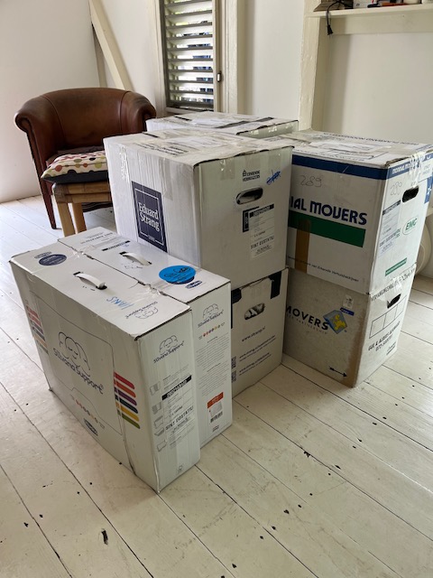 Onze dozen zijn thuis……… Thuis keken we op de papieren. De dozen waren op vrijdag 22 juli aangekomen. Hans had het goed aangevoeld.